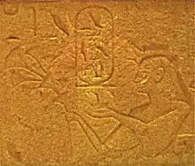 - une colonne provenant du petit sanctuaire lui étant consacré a été retrouvé à Médinet Habou[16] ;