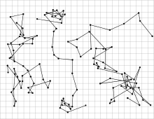 On peut aussi utiliser un modèle de marche aléatoire (ou au hasard), où le mouvement se fait par sauts discrets entre positions définies (on a alors des mouvements en ligne droite entre deux positions), par exemple dans le cas de la diffusion dans les solides. Si les xi sont les positions successives d'une particule, alors on a après n sauts :