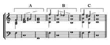 - La note chromatique fait normalement sa résolution régulière par demi-ton diatonique, ascendant si le sens du mouvement chromatique est ascendant (exemple A et C), descendant dans le cas contraire (exemple B).