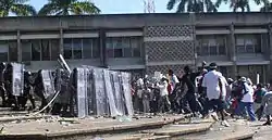 Les mouvements civils à Belize en 2005 désignent une série d'émeutes et manifestations populaires qui se produisent à Belize le et les jours qui suivent, lors de la mise en place de nouvelles taxes. Des grèves se déclenchent, des bureaux gouvernementaux sont incendiés, les ports fermés et la distribution d'eau courante interrompue. Alors que les ministres se rendaient à pied vers l'immeuble du gouvernement, des manifestants leur jettent des pierres et des bouteilles, ce qui provoque l'intervention de la police et des forces militaires pour endiguer la foule.