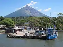 Le port de Moyogalpa en 2011, avec le volcan Concepción en arrière-plan.