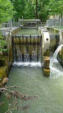 L'Auer Mühlbach se trouve aujourd'hui avec une cascade de quatre mètres de haut dans les locaux de l'usine. Là, il conduit une turbine Kaplan et génère ainsi 250 kilowatts d'électricité dans un groupe électrogène[2],[3].
