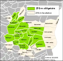 Le projet de zone à faibles émissions est en attente de présentation aux habitants. La loi « climat et résilience » adoptée définitivement en 2021 prévoit la mise en place de ZFE-m dans toutes les agglomérations de plus de 150 000 habitants au plus tard le 31 décembre 2024[27], soit 45 ZFE-m. L'agglomération mulhousienne dépasse ce seuil et est de ce fait incluse dans ce dispositif.