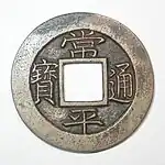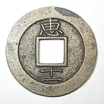 ![]() Recto : l'inscription Sangpyeong Tongbo se lit de haut en bas, puis de gauche à droite. |