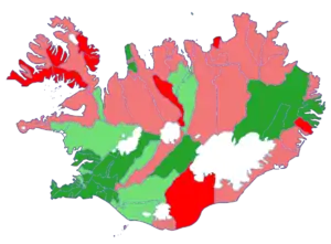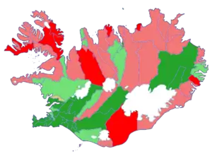 Îles Vestmann | 8000 | Suðurland | 4 135 | +6 | +0,14 % | -446 | -9,74 % |