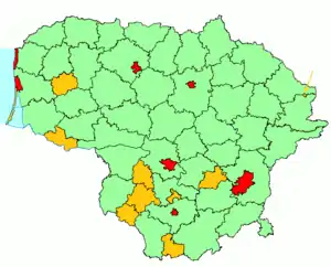 - municipalités de villes (en lituanien : miesto savivaldybės)