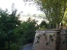 Passé ce point haut, la muraille redescend la colline pour aller buter perpendiculairement sur la courtine méridionale de la cité léonine[9] au niveau du bastion proche de la Porta Cavalleggeri et de la Piazza del Sant'Uffizio[2].