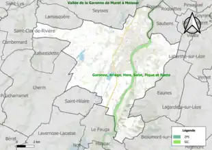 Le réseau Natura 2000 est un réseau écologique européen de sites naturels d'intérêt écologique élaboré à partir des directives habitats et oiseaux, constitué de zones spéciales de conservation (ZSC) et de zones de protection spéciale (ZPS)[Note 3]. Un site Natura 2000 a été défini sur la commune au titre de la directive habitats : « Garonne, Ariège, Hers, Salat, Pique et Neste »[27], d'une superficie de 9 581 ha, un réseau hydrographique pour les poissons migrateurs (zones de frayères actives et potentielles importantes pour le Saumon en particulier qui fait l'objet d'alevinages réguliers et dont des adultes atteignent déjà Foix sur l'Ariège[28].