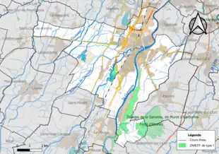 et une ZNIEFF de type 2[Note 5],[29] : « la Garonne et milieux riverains, en aval de Montréjeau » (6 874 ha), couvrant 93 communes dont 64 dans la Haute-Garonne, trois dans le Lot-et-Garonne et 26 dans le Tarn-et-Garonne[34].