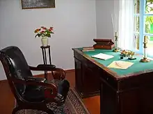 En mai 1841, une note est apparue dans le livre de la maison de Tchilaïev : « 100 roubles d'argent ont été reçus du capitaine Alexeï Arkadievitch Stolypine et du lieutenant Mikhaïl Iourievitch Lermontov de Saint-Pétersbourg pour toute la maison moyenne »[alpha 4],[3]. Mikhaïl Lermontov occupait deux pièces de la maison, avec des fenêtres donnant sur le jardin. C'est ici, sur un bureau, qu'il aurait écrit « Un héros de notre temps ».