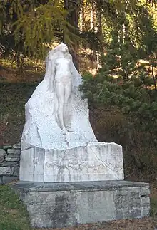 Une sculpture en marbre du sculpteur italien Leonardo Bistolfi se dresse devant le musée. Elle a été créée vers 1904 et porte l'inscription « La bellezza liberata dalla materia - a Giovanni Segantini » (« La Beauté libérée de la matière - pour Giovanni Segantini »). Elle était à l'origine destiné à la tombe de Segantini à Maloja.