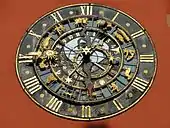 Fabriquée en 1904 par la firme Hörz et restée au musée historique de la ville jusqu'en 1958, l'horloge astronomique est une réplique de celle de l'Hôtel de Ville d'Ulm faite au XVIe siècle par Isaac Habrecht[1]. L'horloge présente un astrolabe et un planétaire, lequel reproduit les mouvements des astres et des étoiles autour du soleil ; le cadran a un diamètre de 2,76 mètres[2].