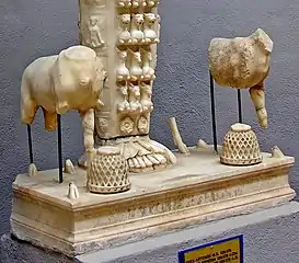Outre les portraits en buste d'Auguste et de son épouse Livie, une tête monumentale de Domitien est particulièrement frappante. Avec son avant-bras séparé et quelques autres fragments, elle appartient à une statue qui était dressée près du temple de Domitien, d'une taille d'environ sept mètres. L'autel du temple de Domitien provient du même site. Un autel plus petit présente un taureau sacrificiel et des restes d'armes et d'armures.