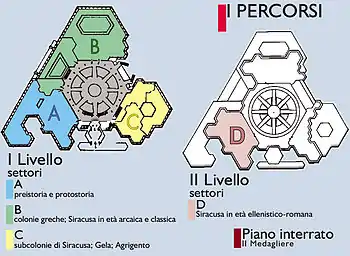 Dans la zone C sont exposés des artefacts des colonies de Syracuse : Akrai (fondée en -664), Kasmenai (-644), Camarina (-598) et Eloro, mais aussi d'autres grandes villes comme Géla et Agrigente.