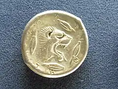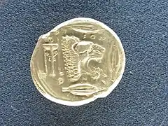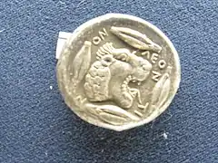 le même, avec inscription l'identifiant comme Sombrotidès fils de Mandroklès ;