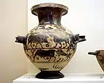 Hydrie à figures noires, avec décor de taureaux. |