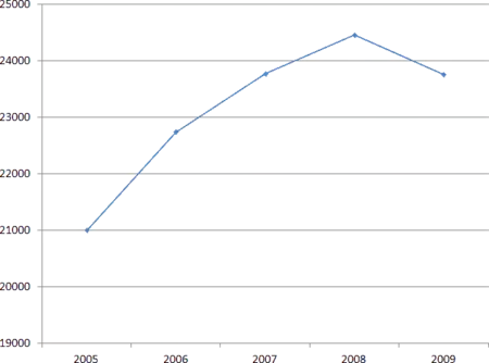 Graphique représentant la fréquentation du musée entre 2005 et 2009.