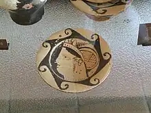 Petit plat étrusque à tige de Genucilia : C'est un plat à offrande représentant un profil féminin. entouré d'un motif de vagues. Il est daté de la seconde moitié du IVe siècle av. J.-C. Un exemplaire conservé à la Providence aux États-Unis porte ce nom gravé (Poplia Genucilia), sans doute le nom de la propriétaire de l'officin.