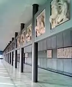 Aperçu des métopes et éléments de la frise du Parthénon dans leur nouvelle présentation au musée de l'Acropole d'Athènes. |