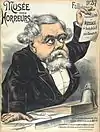 Musée des Patriotes no 1 : Tirez Lâches!!! | [Mi-][24],[9] | Premier numéro du Musée des Patriotes, supplément du Musée des horreurs. Paul Déroulède, alors inculpé de complot devant la Haute Cour, montre sa poitrine à ses accusateurs. Un cadre contient un extrait de la résolution du « parti républicain plébiscitaire », adoptée lors d'une réunion nationaliste le au théâtre de la République[25]. |