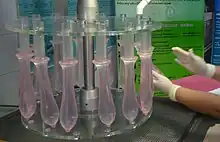 • La résistance et la flexibilité : le préservatif est déroulé sur un tube, puis gonflé avec de l’air jusqu’à ce qu’il éclate. Sa pression au moment de la rupture est l’indicateur de la résistance, son volume celui de la flexibilité.