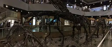 Un moulage monté du spécimen de Tyrannosaurus RTMP 81.6.1 (Black Beauty), au premier étage du musée.