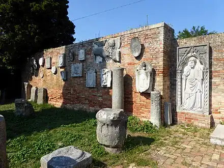 La section présente de nombreux artéfacts en pierre et fragments architecturaux de la zone lagunaire - le plus ancien datant du VIe siècle, où le motif de la la croix prédomine, et ceux des IXe et Xe siècles qui présentent un répertoire décoratif d'animaux -souvent fantastiques- et des motifs végétaux complexes et raffinés, réutilisés dans de nombreux cas à des fins fonctionnelles et décoratives