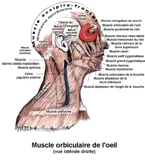 Le muscle orbiculaire de l'œil (Musculus orbicularis oculi en latin) ou muscle orbiculaire des paupières est un muscle formant une zone elliptique autour des paupières et s'étalant en une couche mince sur les paupières elles-mêmes. Il est divisé traditionnellement en trois parties : palpébrale, orbitaire et lacrymale.