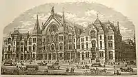 L'Exposition Hall était une énorme structure en bois mesurant 76 m de long, 30 m de large et 24 m de haut. Il y avait également trois autres bâtiments temporaires attenants, le tout formant une superficie totale de 10 103 m2, plus que celle de la World's Fair de 1853 de New York. Le toit du bâtiment était recouvert en étain. Selon la légende, un orage avait surgi pendant une représentation lors du May Festival (en) de 1875. La pluie sur le toit de tôle était devenue si forte que la chorale avait été trempée et la représentation interrompue. Dans le public était présent Reuben Springer (1800-1884), un riche cincinnatien d'ascendance allemande, qui plus tard, décida que Cincinnati avait besoin d'une structure plus permanente.