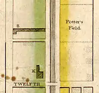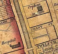 Vers 1832, une épidémie de choléra à Cincinnati fit 832 victimes et un grand nombre d'orphelins. Pour abriter ces derniers, la ville construisit le « Cincinnati Orphan Asylum », non loin du coin des 12th et Elm Streets. L'orphelinat était un immeuble de quatre étages de 20 x16 m qui resta debout pendant 30 ans. Cependant, en 1837, il devint connu sous le nom de « la maison de la peste » (the Pest House) après que l'hôpital eût commencé à l'utiliser pour isoler les patients atteints de maladies infectieuses, et le terrain autour du bâtiment sous celui de fosse commune. C'est à cet endroit que l'hôpital enterrait les personnes qui se suicidaient, les étrangers, les indigents et les sans-abri de Cincinnati. On emmitouflait simplement les défunts puis on les laissait tomber dans la terre, sans cercueil. À cette époque, ce lieu était encore considéré comme la périphérie de la ville.