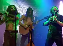 Pour les Instruments à cordes, on y retrouve la vielle à roue appelée drehleier, le hackbrett et le hexenscheit[i 2], la mandoline, le zister ou halszither et waldzither[i 2] ou le Zither, sorte de cithare[i 2].