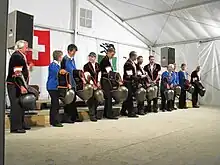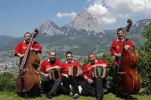 Les instruments usités sont des instruments traditionnels tels que l'accordéon, la clarinette, le saxophone, le violon fiddle, le piano et la contrebasse, ainsi que des instruments spécifiques locaux tels que, pour les Instruments à vent le büchel, les cors des Alpes ou alphorns[i 1], ceux-ci étant bien souvent plusieurs, jouant sur 4 tonalités, le langnauerli, le mundharmonika ou harmonica[i 1], la piva[21], le sackpfeife, le Schwâbelpfiffli, le Schwegel ou fifre, le Schwyzerörgeli ou schwyzoise[i 1], la Tiba…