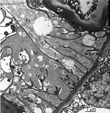 En 1881, Franz Kamienski[10], [11] suggéra que ces champignons pourraient nourrir le Monotrope sucepin à partir des arbres dont ils colonisent aussi les racines. Enfin, en 1960, le Suédois Erik Björkman démontra cette hypothèse en injectant des sucres marqués à l'aide d'un isotope radioactif dans la sève de résineux voisins : il observa un transfert de radioactivité vers le Monotrope, mais non vers les autres plantes voisines. Il montra aussi que le Monotrope dépérit lorsqu'on coupe les filaments de champignon qui le relient aux arbres[12]. Aujourd'hui, cette interaction décrite sous le nom de mycorhize par un autre Allemand, Albert Franck, en 1885, est très fréquente. Les filaments d'un champignon du sol colonisent les tissus superficiels de la racine chez plus de 80 pour cent des plantes, formant un organe mixte : la mycorhize.