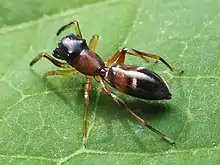 Myrmarachne formicaria, la Saltique fourmi[1] est une espèce d'araignée aranéomorphes de la famille des Salticidae. Par sa morphologie et sa démarche, cette Araignée sauteuse mime des fourmis rousses des genres Myrmica et Formica. Présente de la France au Japon, cette espèce est introduite depuis les années 2000 en Amérique du Nord.