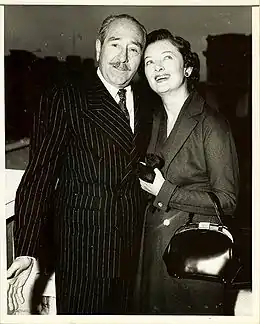 - Elle fut brièvement et secrètement la maîtresse du flambeur Titanic Thompson (en) au début des années 1930[158],[159]. Thompson affirma qu'après avoir couché avec Myrna Loy dans un hôtel, il avait repris la route avec elle et avait eu un accident au volant de sa Pierce-Arrow. L'actrice s'en sortit indemne mais le flambeur eut une légère blessure à la tête[160].