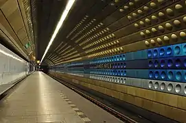 Le quai est située à −53 m. sous la surface, ce qui en fait la station la plus profonde du métro pragois[1]. Ce n'est cependant pas le point le plus profond du métro pragois puisque le tunnel entre les stations Hradčanská et Malostranská descend jusqu'à −68 m.