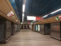 Les accès permettent de rejoindre un hall en relation avec le quai par un escalier mécanique de 87 m. avec 533 marches ce qui en fait un des plus longs de l'Union européenne, de type Victoria FT 732 il progresse à la vitesse de 0,75 m/s, ce qui permet une montée ou une descente de 2 minutes et 15 secondes. Il n'y a par contre pas encore d'ascenseur, ce qui en fait une station non accessible aux personnes à la mobilité réduite.