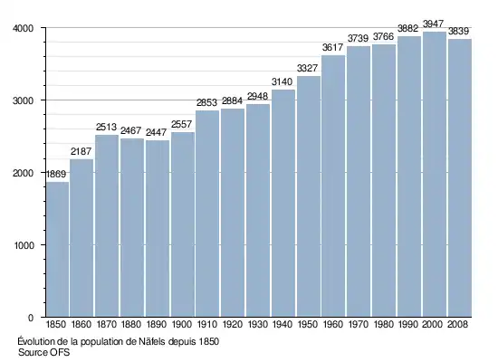 Le graphique suivant résume l'évolution de la population de Näfels entre 1850 et 2008[2] :