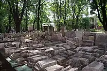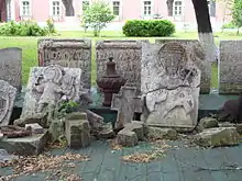 Fragments d'anciennes pierres tombales apportées de partout et empilées près de la Grande Cathédrale.