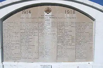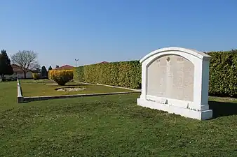 À l'extrémité nord de la nécropole a été érigée une stèle sur laquelle sont inscrits les noms de soldats inhumés dans les ossuaires.