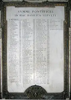 Il est à noter que certains papes initialement inhumés dans la basilique Saint-Pierre ont été déplacés vers d'autres églises de Rome: