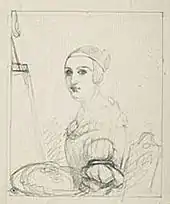 - Musée du Louvre, « Cogniet Léon, école française : Jeune femme, assise devant un chevalet, une palette à la main », sur Louvre : Les collections du département des arts graphiques, (consulté le ).