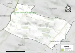 La commune est dans le bassin de la Garonne, au sein du bassin hydrographique Adour-Garonne[7]. Elle est drainée par la Gimone, la Gesse, le ruisseau de Jean-Poc, le ruisseau de la Coume et le ruisseau du Bois de Sarons, constituant un réseau hydrographique de 4 km de longueur totale[8],[Carte 1].