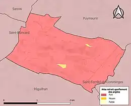 Le retrait-gonflement des sols argileux est susceptible d'engendrer des dommages importants aux bâtiments en cas d’alternance de périodes de sécheresse et de pluie. La totalité de la commune est en aléa moyen ou fort (88,8 % au niveau départemental et 48,5 % au niveau national). Sur les 27 bâtiments dénombrés sur la commune en 2019, 27 sont en aléa moyen ou fort, soit 100 %, à comparer aux 98 % au niveau départemental et 54 % au niveau national. Une cartographie de l'exposition du territoire national au retrait gonflement des sols argileux est disponible sur le site du BRGM[25],[Carte 3].