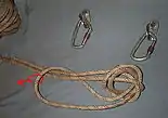 Le nœud de chaise double sur son double se réalise à mi-corde sur une portion doublée.