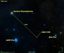La nébuleuse NGC 3195 est située à environ 2,5 degrés au sud-ouest de l'étoile Gamma Chamaeleontis, à peu près à mi-chemin entre Zeta Chamaeleontis (en) et Delta2 Chamaeleontis.