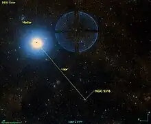 NGC 5316 est situé à environ 1,9 degré au sud-ouest de l'étoile Hadar.