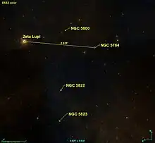NGC 5764 est situé à environ 2,9 degrés au sud-ouest de l'étoile Zeta Lupi. Les amas ouverts NGC 5800, NGC 5822 et NGC 5823 se trouvent dans la même région du ciel.