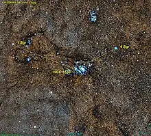 Le logiciel Aladin du centre de données astronomiques de Strasbourg permet d'identifier les étoiles les plus brillantes dans le voisinage de l'amas. Les caractéristiques de ces étoiles sont aussi disponibles sur la base de données Simbad.