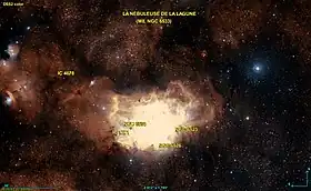 - On ajoute la lettre n à la classification de Trumpler pour indiquer que l'amas est à l'intérieur d'une nébuleuse, ici la nébuleuse de la Lagune.